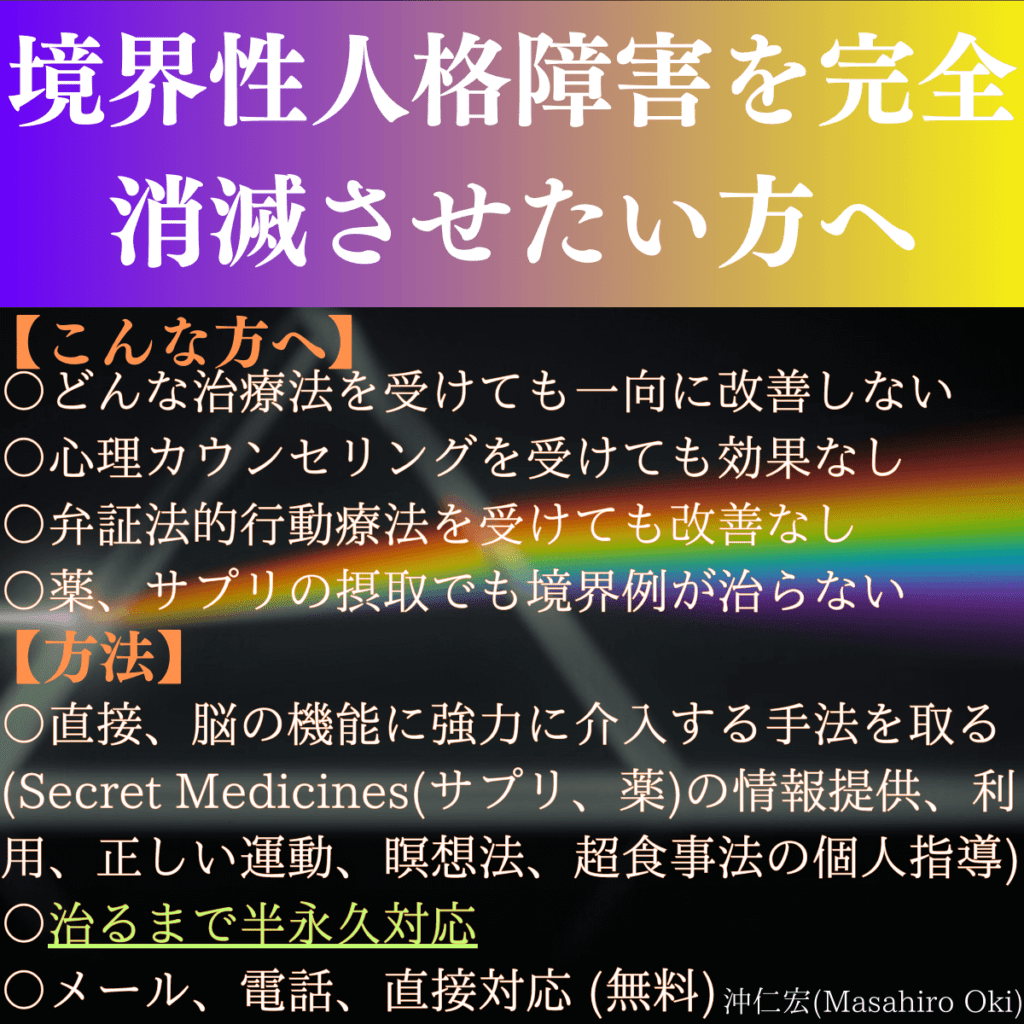 境界性人格、AC等の感情コントロール障害にも十二分に対応。